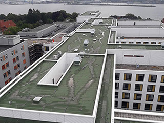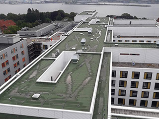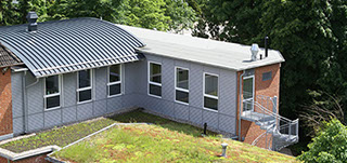 Dachabdichtung als Umkehrdach, Warmdachaufbau mit Mineralwolle, Gründach mit Fassade mit Alu Welle