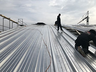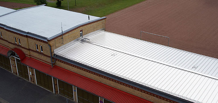 ca. 600 m² Kalzip, ca. 960 m² Alwitra Evalon schiefergrau