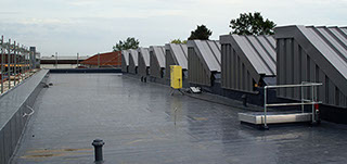 ca. 1440 m² Bitumenabdichtung Hasse, ca. 440 m² Fassadenbekleidung mit Kalzip